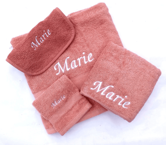 Geschenkpakket bestaande uit – grote handdoek (70cm x 140cm) – kleine handdoek (50cm op 100cm) – washandje – slabbetje