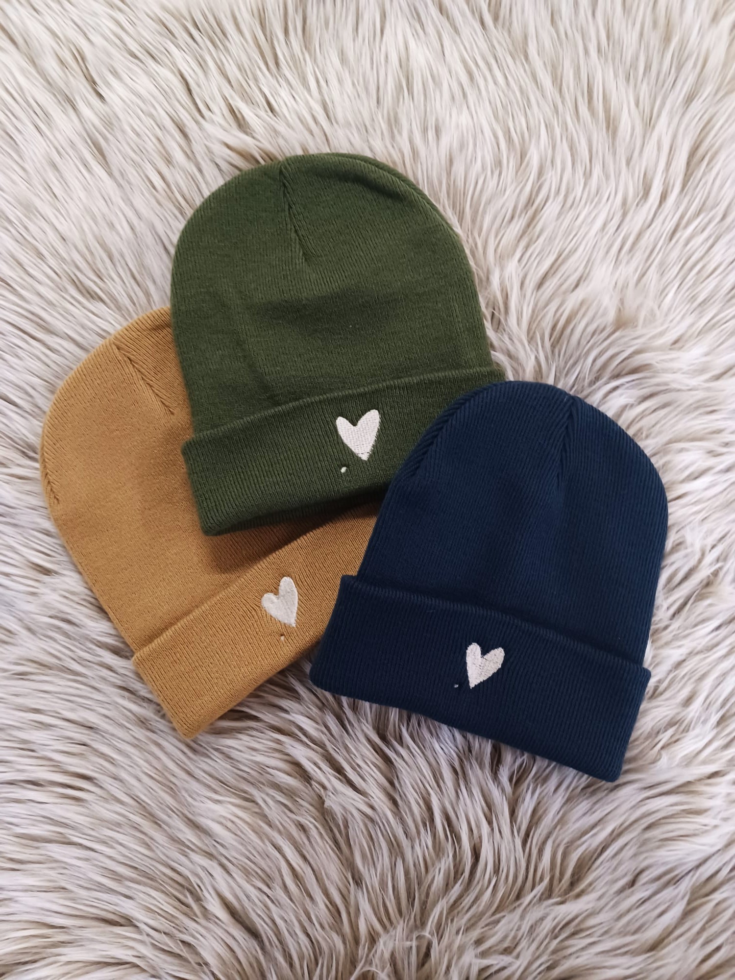 Deze muts met een fijn geborduurd hartje houdt je niet alleen lekker warm, maar geeft ook een vleugje liefde aan je look. Zacht, tijdloos en met zorg gemaakt – perfect om jezelf of iemand anders een warm hart toe te dragen.