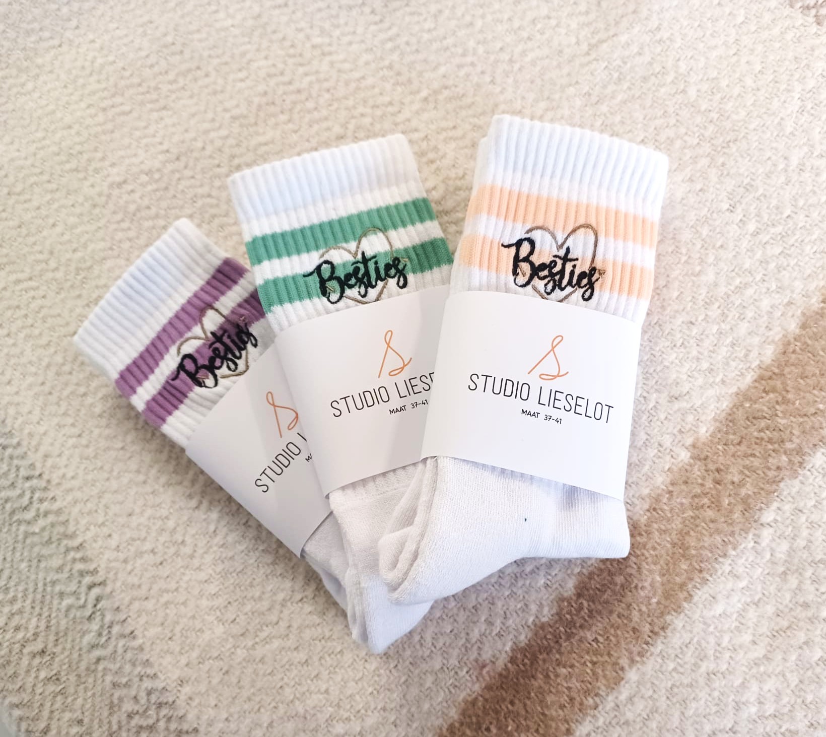 Kies uit mint, lila of peach… of neem ze alle drie, want echte besties matchen met flair!